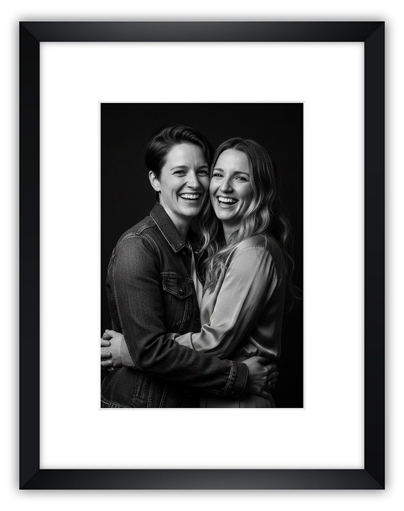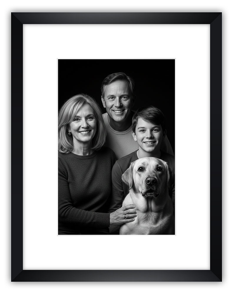 - Spedizione rapida, direttamente a casa, del ritratto stampato e incorniciato.